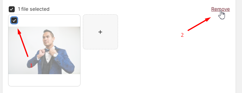 - Ýttu á + og þaðan hakaru í þær myndir sem þú vilt hafa fyrir vöruna.