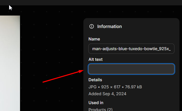 - Ýttu á myndina sem þú vilt bæta við Alt texta.